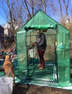 Hi all! I have been on Cloud Nine since I purchased my mini greenhouse “She Shed”. It measures just about 7 feet high by 5 feet wide and it came with 12 detaching shelves. We attempted putting it together as a family, Sage just tried to eat the connector pieces, but patiently sat through the rest of the rest up when we decided she had eaten enough dirt. /Devon ended up assembling most of it. I am PSYCHED! It is already successfully serving its purpose and helping me keep focused and motivated to be outside. It feels so good and really warms the soul (literally) to be outside and getting started on making Spring bloom. I have a pretty cute set up in here and am feeling the sunny vibes on a different level. In fact I am currently in here writing this blog. There is just enough room to park my folding camping chair in between the shelves and its convenient to pack it up when I need more space!